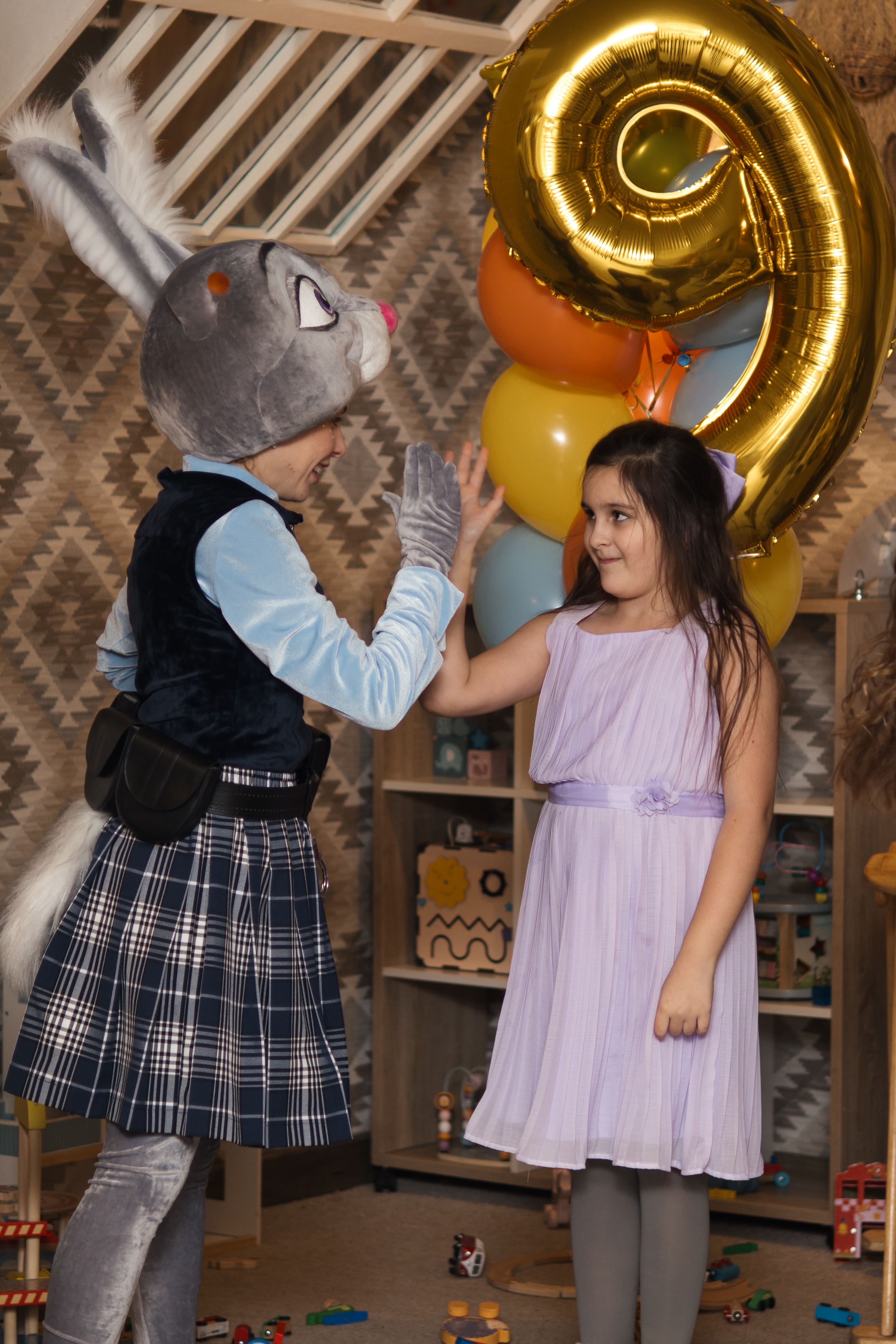 На ваше свято завітають відважна Джуді Гопс і хитрий Нік Вайлд, щоб разом із дітьми розкрити таємниці великого міста тварин. На гостей чекає анімаційно-квестова програма з захопливими завданнями, веселими іграми, динамічними випробуваннями та пригодами, де знадобляться кмітливість, дружба й командний дух. Це свято подарує море сміху, драйву та відчуття справжньої мультяшної пригоди!